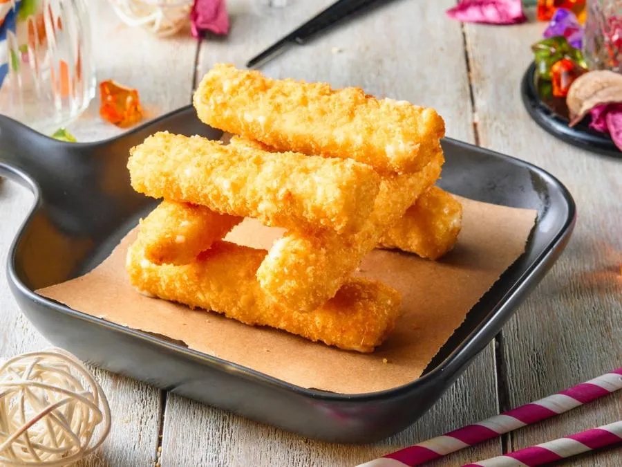 Кусочки нежного сыра Моцарелла в панировке, обжарены во фритюре до хрустящей корочки