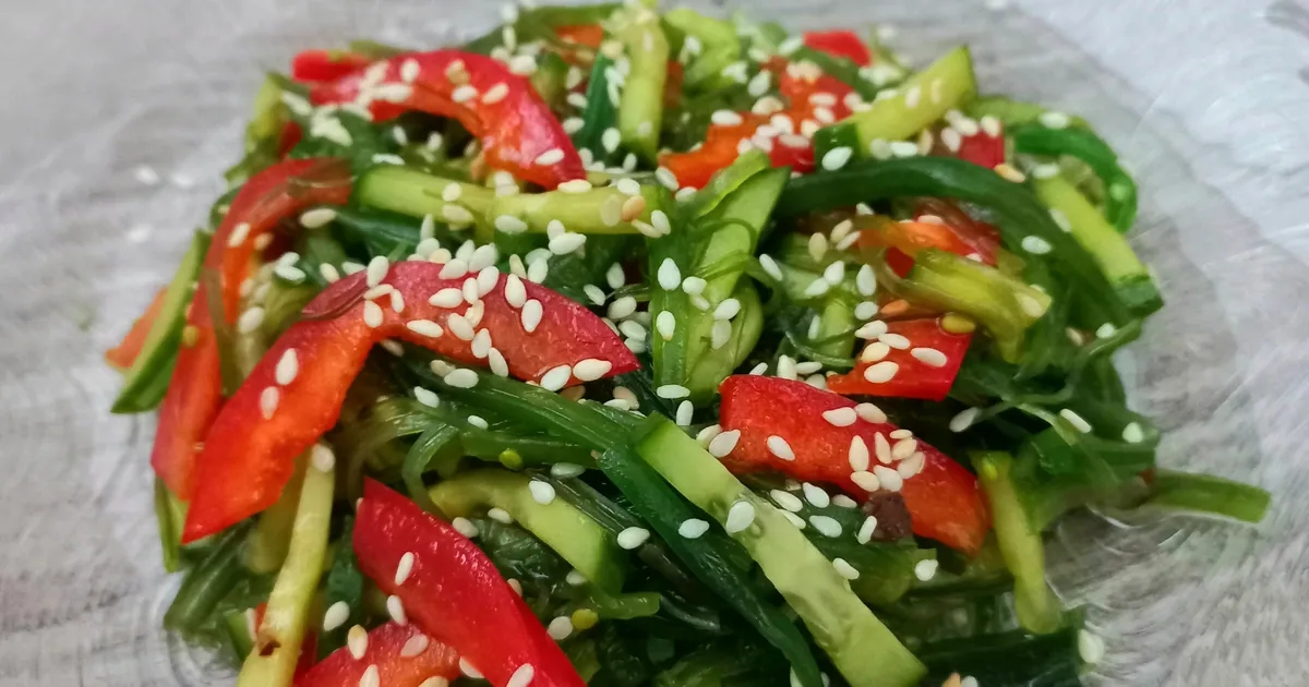 Чука, перец, огурец, ореховый соус, кунжут