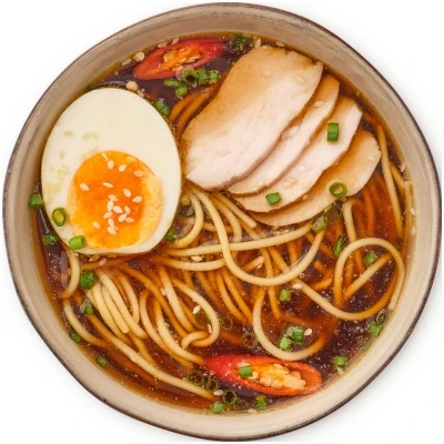 Курица, Яйцо, пшеничная лапша, куриный бульон, красный перец, зеленый свежий лук
